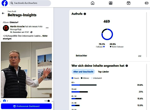 Ich beachte diese Reaktionsmuster. Sie zeigen mir, welche Stimmung in einem erreichbaren Publikum herrscht; freilich oft nur für Augenblicke. Es wäre naiv anzunehmen, ein Beitrag mit über 30.000 Zugriffen hätte folglich einen günstigen Effekt auf unser Kulturprojekt. Aber der Text mit rund 300 Zugriffen erinnert mich daran, daß ich den gesellschaftlichen Stellenwert der Wissens- und Kulturarbeit nicht überschätzen sollte.