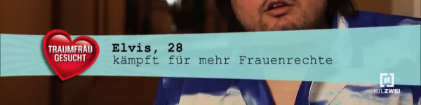 Ich muß zur Kenntnis nehmen, daß ein Teil der Männer in unserer vorherrschenden Männerkultur sich eigene Defizite auf diese Art „a la Elvis“ erklärt, wenn sie bei Frauen auf Ablehnung stoßen. Das Beispiel fand ich gestern, als ich durch einen Staffelstart von „Traumfrau gesucht – Das Geschäft mit der Liebe“ (RTL) gestreunt bin.